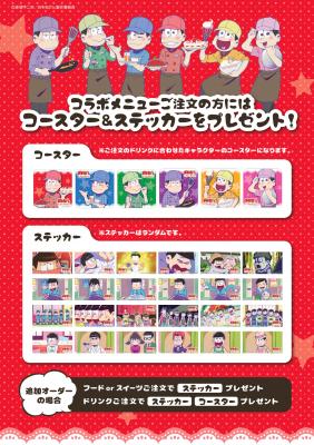 ■ノベルティ:コラボメニュー注文で、限定オリジナルコースター6種類とステッカー24種類の中からランダムでプレゼント