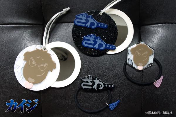 作品に登場するアイテムをモチーフにしたシルバーアクセサリーや、カイジ犬、ざわ…のヘアゴムやミラー、お部屋のインテリアにぴったりなざわ…オーナメントなどをラインナップ。
