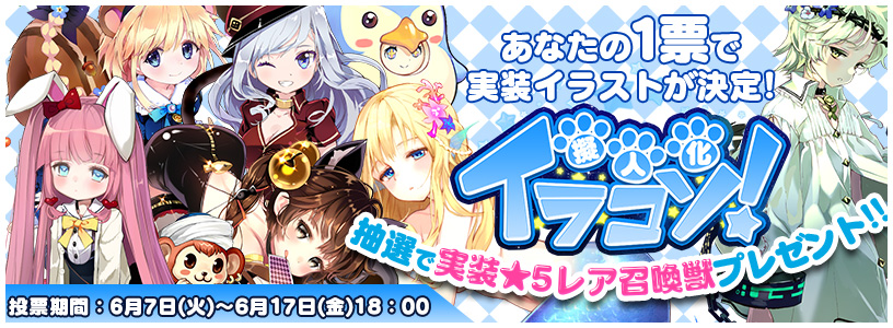 また投票いただいた方の中から抽選で5名様に、実装後、最優秀作品の★5限定レア召喚獣をプレゼントいたします。