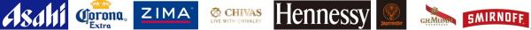 (アサヒビール・Corona Extra・ZIMA・CHIVAS・Hennessy・Jägermeister・G.H.マム・SMIRNOFF)