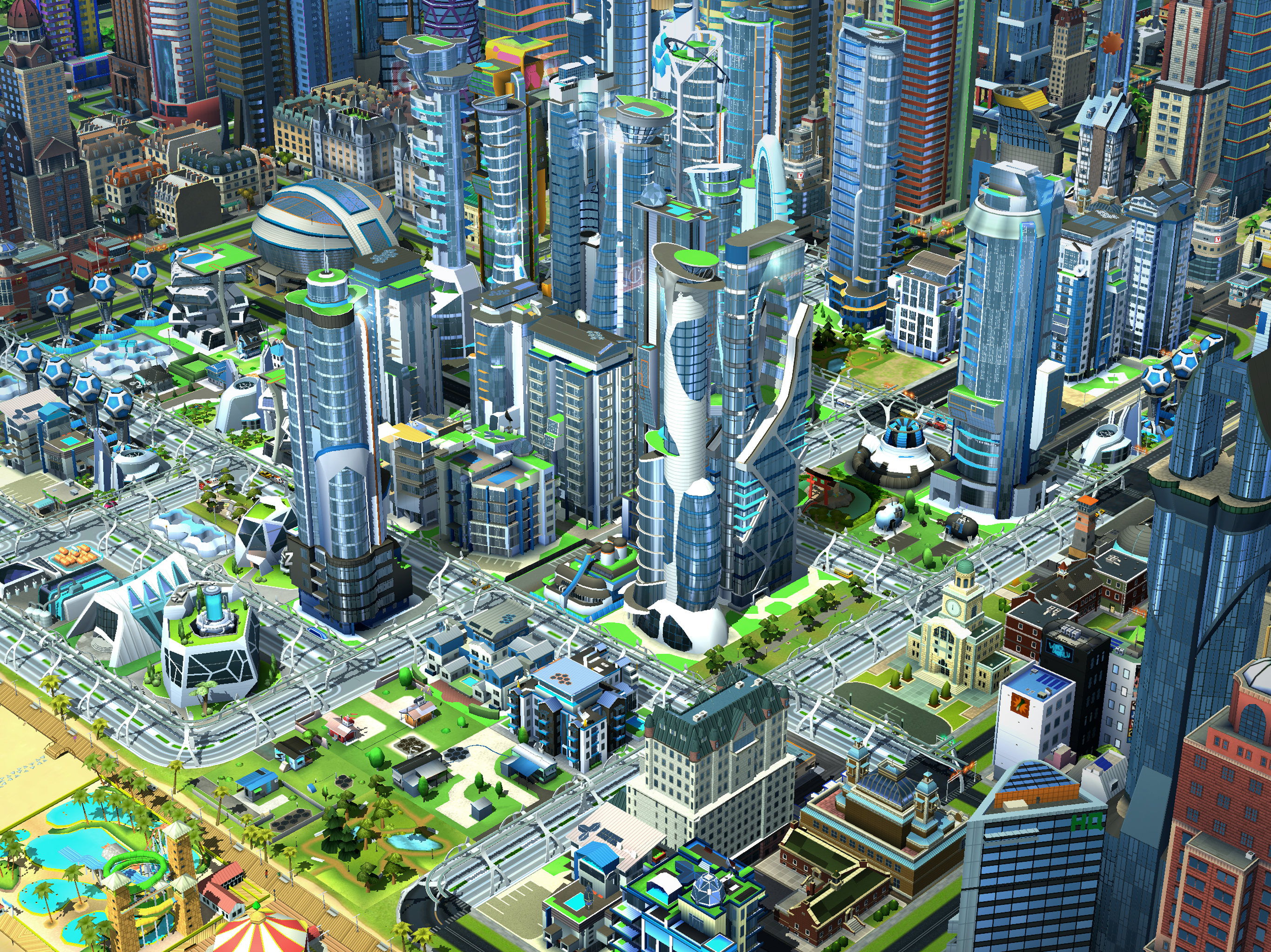 近未来の高層ビル、資材、サービス、そしてゲーム通貨をアンロックしてフューチャーシティをお楽しみください。