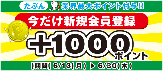 ■キャンペーン名:新規会員登録で1500円分ポイントプレゼント