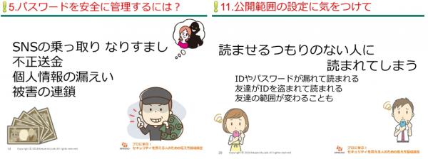 ・最近のスマホやSNS利用方法やセキュリティ脅威などの最新トピックを材料にします。