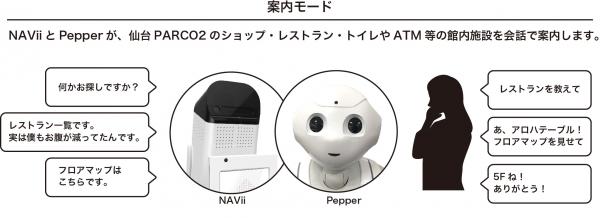 株式会社パルコ(以下 パルコ)は7月1日(金)にグランドオープンする仙台パルコ2において、アメリカのインフォメーションロボット「NAViiTM(ナビー)」および日本の「Pepper(ペッパー)」を導入し、2種類の異なるロボットが共同で、ショッピングセンターの接客業務のサポートを実施いたします。株式会社パルコ・シティ(以下 パルコ・シティ)は、Pepper用多言語インフォメーションロボアプリ「SCコンシェルジュ(R)ロボ」を提供するほか、本取り組みのサポートを行います。