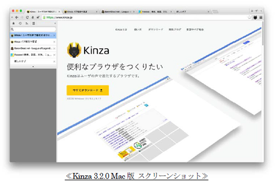 インターネットサービスやソフトウェアの開発・提供を行うDayz株式会社(本社:東京都中央区、代表取締役:玉城 朝)は、ウェブブラウザ「Kinza」の最新版「Kinza 3.2.0」を本日より公開します。今回の公開において、ユーザーからの要望に応えてMac版を正式公開しました。