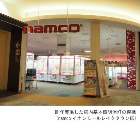 ナムコでは、直営アミューズメント施設で多数のゲーム機器が稼働していることを踏まえ、消費電力削減などの環境配慮を当社のCSR(企業の社会的責任)における「重要項目」と位置付け、環境配慮型ゲーム機器の積極購入や、既存ゲーム機照明のLED化、有料の屋内遊具施設など、電力を使わない「遊び」の導入等を進めています。 今年度の店内ライトダウンは、昨年に引き続き照明設備面で実施要件を満たしている店舗の中で、ライトダウンを行ってもお客様の安全が十分確保でき、お客様が安心してお楽しみいただけるエリアに限定して実施します。
