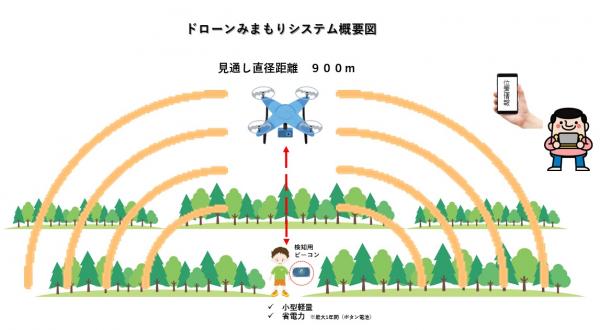 今回のテストにより、子供や徘徊老人を見失った地点より数キロ範囲を指定したGPS情報を元にドローンが飛行し、上空から電波強度を元に対象人物を発見するといったみまもり方法が可能である事が証明されました。