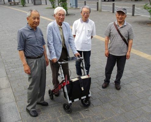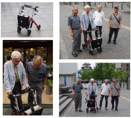 富山大学歩行圏コミュニティ研究会は、元気な高齢者はもちろん、足腰が弱くなった高齢者も積極的に街に出て、生き生きと交流を楽しむことができる魅力あるコミュニティの実現を目指して7年間活動をしてきました。使いやすく安全でおしゃれな歩行補助車「まちなかカート」を開発し、市街地や市役所などに設置してきました。