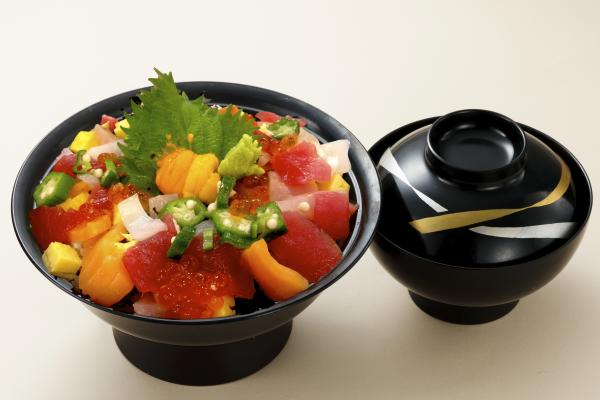 ウニ、イクラ、カンパチ、イカ、びんとろ、まぐろ、サーモン、玉子、おくらが入った“特選きづな丼”をご提供。