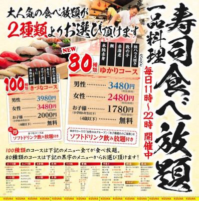 【80種類食べ放題「ゆかり」コース】(税抜価格)