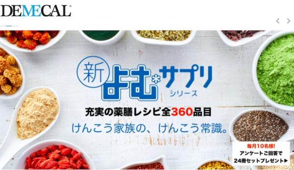 また、株式会社ウィズネットは健康管理は個人の意識変容からと考えセルフケアのためのコンテンツ「新読むサプリ」(画像2)を専門医師とともに24シリーズ製作、食の大切さを食材の機能性から捉えたメニュー開発として<薬膳レシピ360種>の独自コンテンツも所有しており、それらのコンテンツの電子化、多面化を含め展開を図っていくと同時に、新しい理念や行動規範を基盤としたセルフケア商品「環境と健康の見える化」商品の「DEMECAL」サイト内でのeコマースも積極的に推し進めていきます。(画像3)
