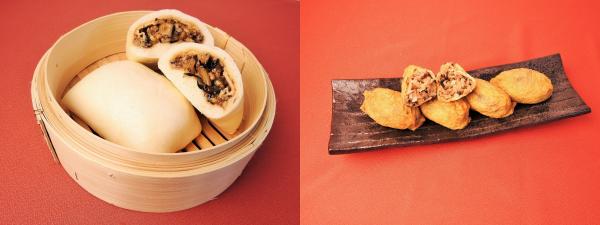 このたび共同開発の完成品として、油揚げで和風の具材を包んで更に中華まんに仕上げた『おきつねまん(税抜363円)』と油揚げを焼売の皮の代わりにした和風焼売『おきつね焼売 4個入(税抜500円)』を「神楽坂五十番 新宿小田急エース店」限定で販売いたします。本商品につきましては、2016年6月30日(木)~7月31日(日)の期間限定販売(予定)となりますので、是非ともお買い上げ下さいますようお願い申し上げます。