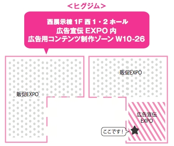 場所は、同展に引き続き、西展示場1階、1・2ホール。「広告用コンテンツ制作ゾーンW10-26」にブースを構えています。