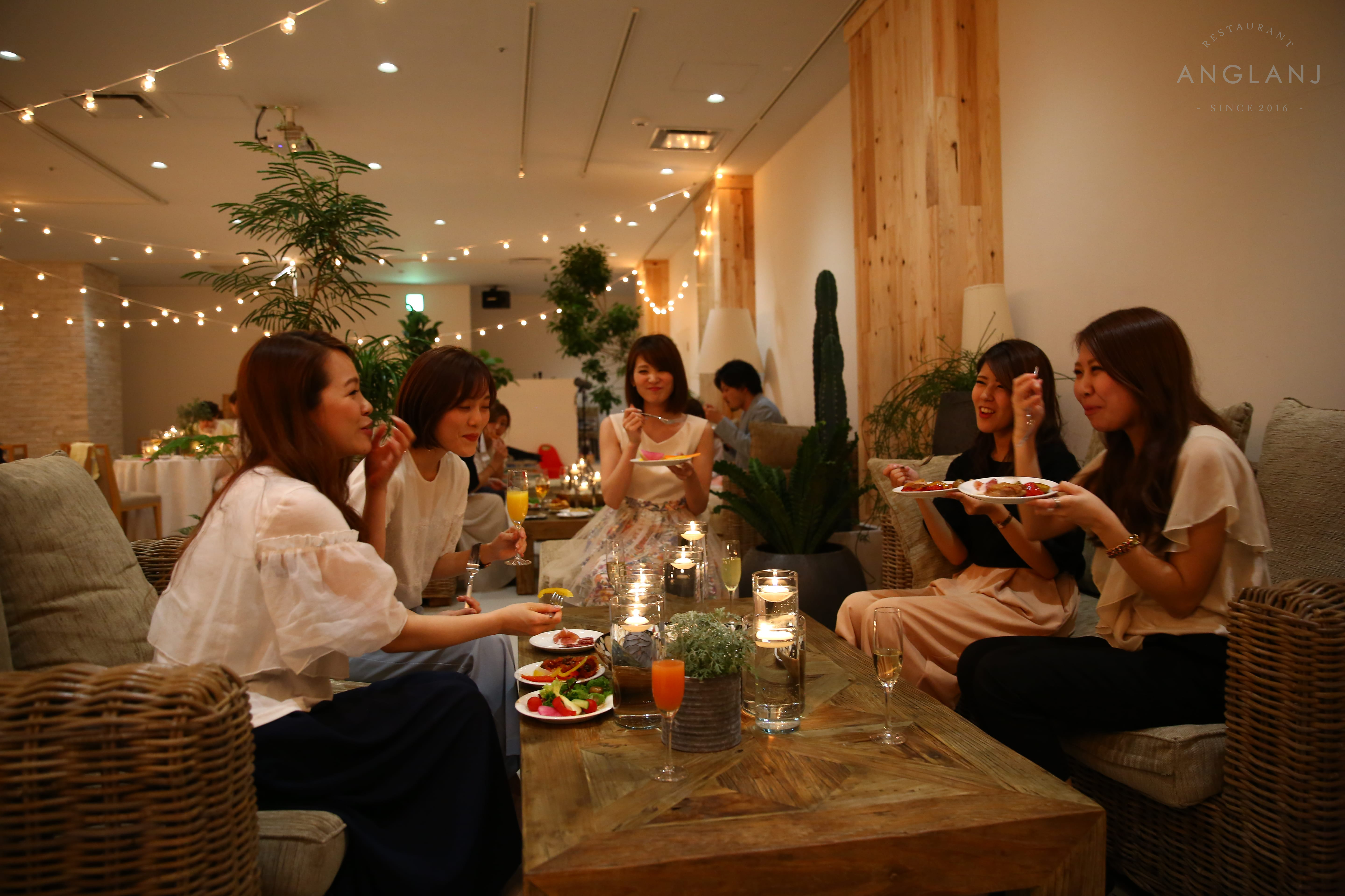 上品な雰囲気でありながら居心地が良い、まるで異国のリゾート地に訪れたかのような、非日常感たっぷりの魅惑の空間です。気のおけない友人達や愛する恋人、大切な家族と。とっておきの場面にアングランジェはぴったりです。