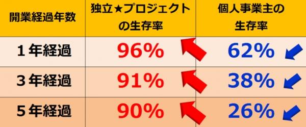 統計では個人事業主は設立1年以内に38%が廃業しています。5年後も店を続けている確率はたったの26%です。