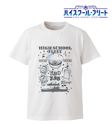 ▼【ハイスクール・フリート】アニバーサリーラインアート T シャツ 『ハイスクール・フリート』に登場する岬明乃と知名もえかの生誕を祝う記念 T シャツを作成い たしました。 彼女たち二人に縁があるキーアイテムを線画にし、艦船と2人の誕生日を加えデザインしており ます。