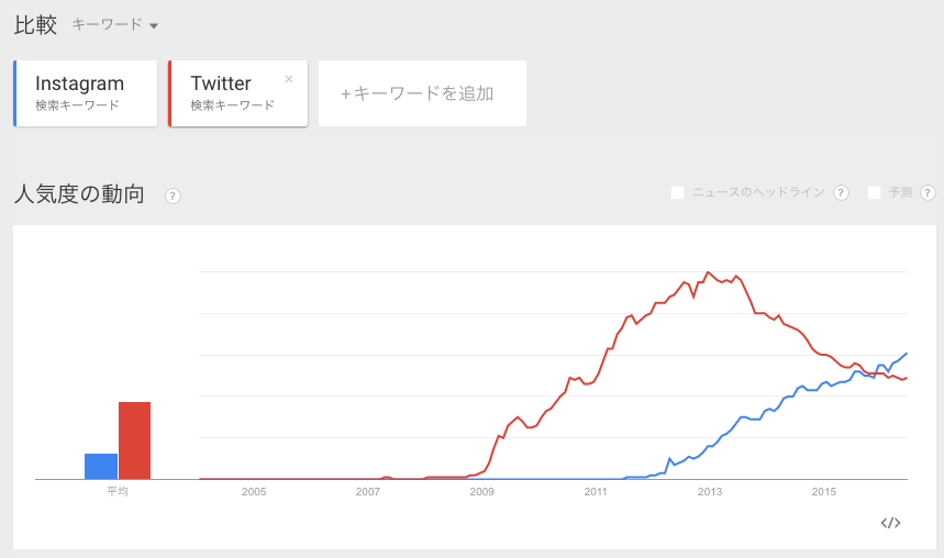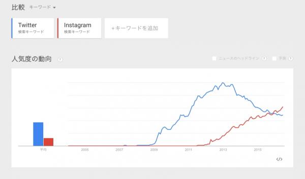 (図2: InstagramとTwitterではすでにトレンドが逆転)