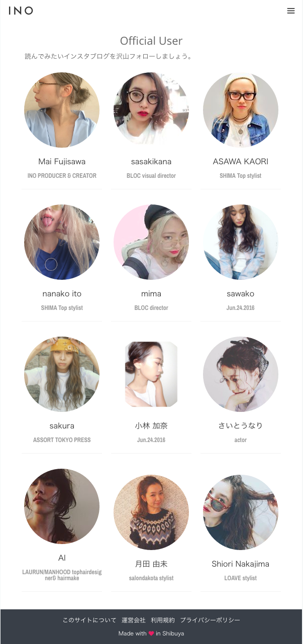 既に、500人以上のインスタグラマーがINO(アイノウ)に登録しており、10代~30代の女性を中心にファッションや美容、ライフスタイルなどに関心の高い独自のインスタグラマーネットワークを構築しています。
