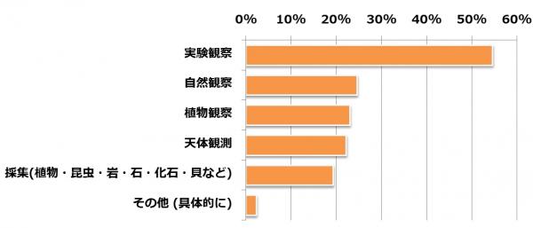理科の自由研究で最も多く選ばれたテーマは、半数以上の方が選んだ「実験観察」でした。理科の問題では実験観察が入試問題として出される学校もありますので、準備~仮説立案~実験~検証といった実験の過程を自ら体験することで、問題に対する理解がより深まります。