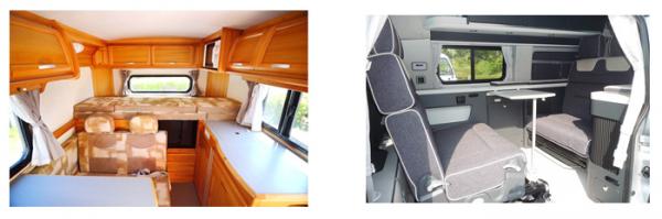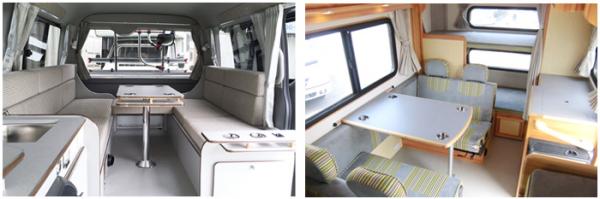 また、このクラスには珍しい、後部ハイマウントベッドを装備。延長するとセミダブルベッド程度の大きさになり、大人2名が就寝可能。更にハイマウントベッド下は大きな収納庫があり、5名分の荷物も楽に積み込むことができます。