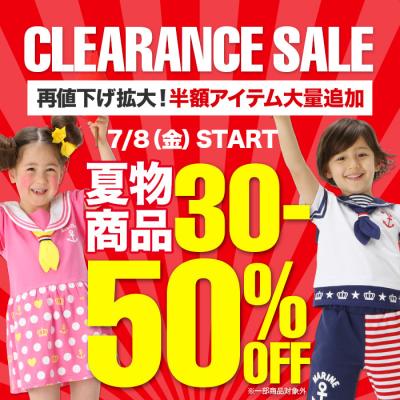 夏物セール商品全品30%~50%OFFに値下げし、さらにパワーアップ