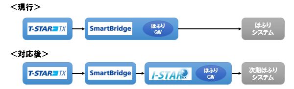 「SmartBridge」は、「T-STAR」(資産運用会向けにNRIが提供しているソリューション)と現行のほふりシステムを接続するのに利用されています。今回の「SmartBridge」のシステム改修では、既にほふりの次期システムに対応しているNRIの保振決済照合ソリューション「I-STAR/MX」*3を活用し、次期ほふりシステム接続を実現します。