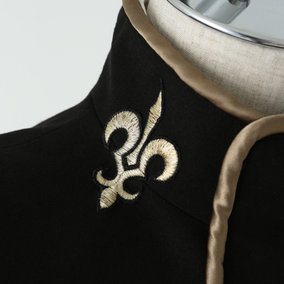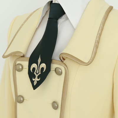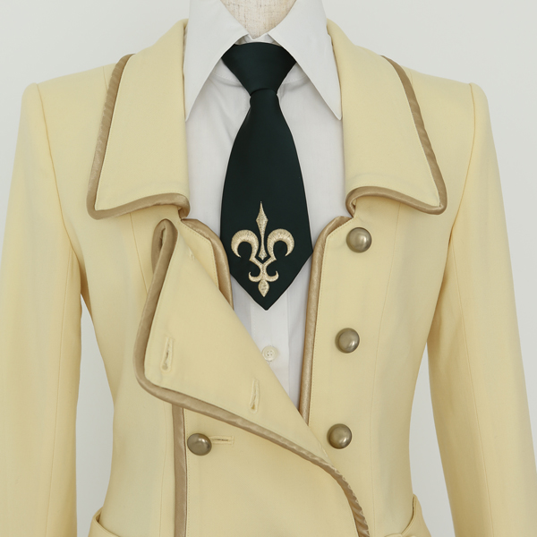 すらっとしたスタイルのシルエットを再現するため、タイトな造りで綺麗なラインになるよう制服を再現。それぞれ生地の深い「黒」や女子制服の柔らかな色合い、金糸で施した本格刺繍仕上げのエンブレムなど、公式監修のもと細部までこだわり国内縫製で丁寧に製作しています。