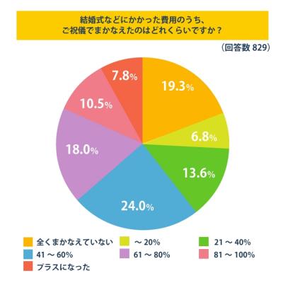 ちなみに、「まったくまかなえていない」との回答が19.3%ありますが、これはふたりだけの式、写真撮影のみなど、招待客がいなかった方の回答がふくまれているためです。