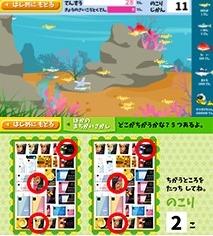 ゲームコンテンツは、4種類(おさかなキャッチ、えさがし、カードあわせ、まちがいさがし)。