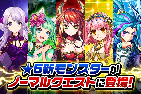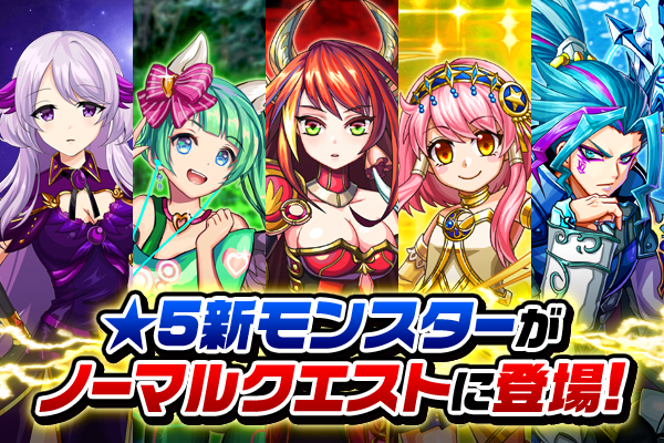 ※1既にノーマルクエストをクリアされているユーザー様には、下記5キャラの「★5新モンスター」をプレゼントBOXにお送りしております。