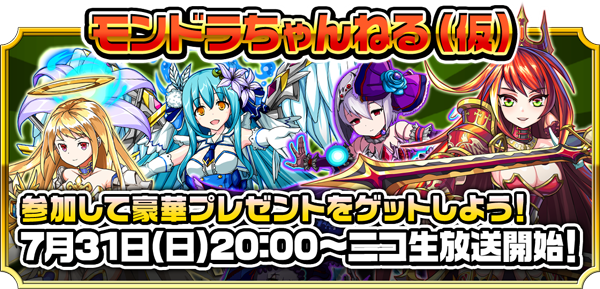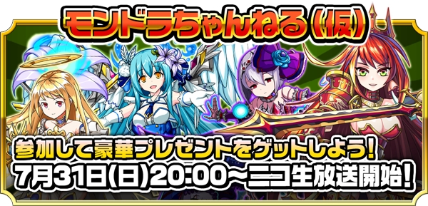 2016年7月31日(日)、ニコニコ生放送にて「モンドラチャンネル(仮)~第3回~」を配信いたします。