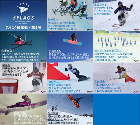 株式会社ACT NOW(サイト構築・運用)、株式会社NTTドコモ(dケータイ払い提供・プロモーション)、一般社団法人アスリートエール(個別案件作成・管理)の三社が行う、冬競技アスリート向けスポーツファンディング(小口協賛金九州)のプロジェクト「5Flags」。(2016年7月14日(木)~2017年3月31日(金))