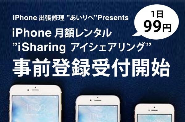 全国25都道府県でiPhoneのオンデマンド出張修理サービス『あいりぺ(iRepairs Lab)』(http://www.irepairs-lab.com)を展開するLife Support Lab(ライフ サポート ラボ)株式会社は、2016年7月13日(火)に1日99円の画面割り放題iPhone月定額レンタルサービス『iSharing(アイシェアリング)』の申込事前登録を開始しました。