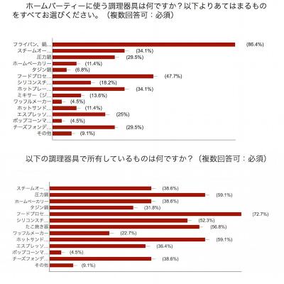 日本でのホームパーティーカルチャー普及を目的として、ホームパーティー検定などを行う一般社団法人日本ホームパーティー協会(http://hpaj.org)は、ピクニックパーティー協会(http://ppaj.org)と共同で、「ホームパーティーの調理器具」に関するアンケート調査を行いました。その結果からいくつかをご報告いたします。