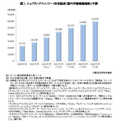 本調査におけるシェアリングエコノミー市場規模は、サービス提供事業者のマッチング手数料や販売手数料、月会費、その他サービス収入などのサービス提供事業者売上高ベースで算出した。