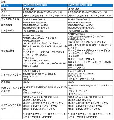2016年7月20日- SAPPHIREテクノロジーは、新製品SAPPHIRE GPROコマーシャルグラフィックス・シリーズを発表致します。最先端のチップテクノロジー、耐久性と接続性による産業用の拡張機能を持つことで、新製品SAPPHIRE GPRO 6200と4200コマーシャルグラフィックスカードは、マルチディスプレイの商用機器にとって新たに競争力のある選択肢となります。