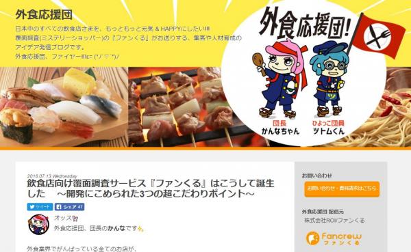 覆面調査・ミステリーショッパーの『ファンくる』を運営する株式会社ROI(本社:東京都新宿区 代表取締役社長:恵島 良太郎 URL: http://www.j-roi.com/)は、飲食店向け総合情報発信WEBサイト「外食応援団 (http://gaishokuoendan.fancrew.jp/)」をリリースいたしました。(2016年7月13日)