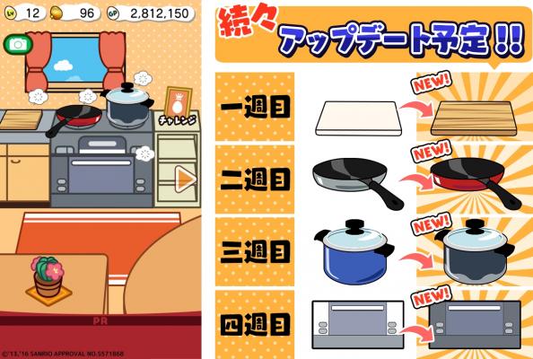 アップデートは1週目:まな板、2週目:フライパン、3週目:なべ、4週目:レンジの順番での実施を予定しております。調理器具はアップデート後にパワーアップできるようになり、調理器具をパワーアップすることで調理できるぐでたまが増えますので、さらにたくさんのぐでたまを集めることができるようになります。調理器具のアップデートを楽しみにお待ちください!