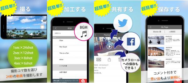 わずか4つのステップでムービーが完成し、お友達や家族にシェアもできてしまいます。