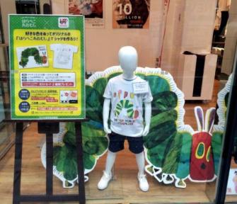(1)ユニクロ吉祥寺店に設置されている『はらぺこあおむし』のぬり絵に好きな色をぬって、自分だけのオリジナルTシャツ(UTme!)を作ろう!