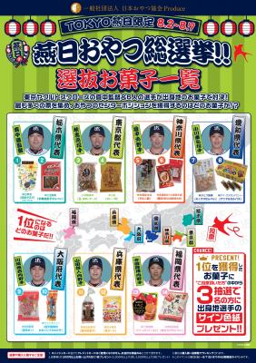 このイベントでは、東京ヤクルトスワローズの選手(監督)の出身地のご当地お菓子をラインナップ、お客様が投票を行ない “おやつのセンターポジション”を決定します。
