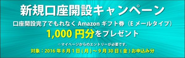 口座開設完了でAmazonギフト券(Eメールタイプ)1,000円分をプレゼントします。