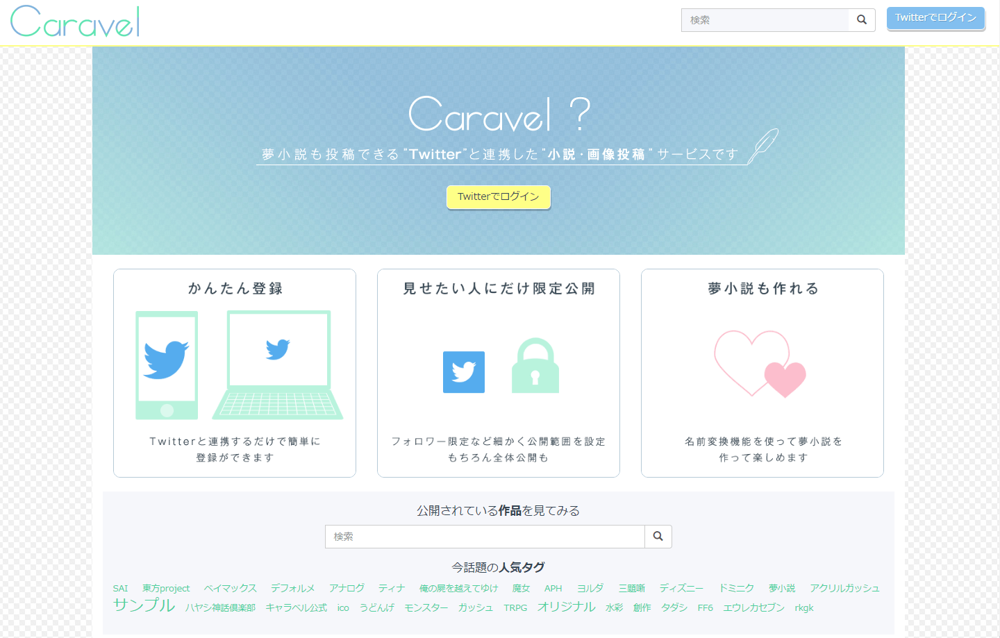 「Caravel」は小説やイラストなどを見せたい人だけに公開できるサービスです。投稿時に公開範囲を選べるため、同じ趣味を持った人やリアルな友達だけに公開することが可能です。