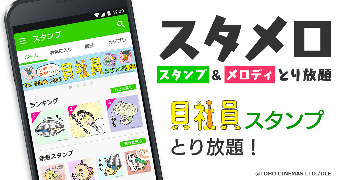 株式会社モバイルファクトリー(本社:東京都品川区、代表取締役:宮嶌裕二)は、ソフトバンク株式会社(本社:東京都港区 代表取締役社長 兼 CEO:宮内謙)の提供するアプリ取り放題サービス「AppPass(アップパス)」内にて配信している、スタンプ素材と着信音がとり放題になるアプリ「スタメロ - スタンプ&メロディとり放題」内にて、映画館やテレビで大人気のキャラクター「貝社員」のスタンプを2016年8月4日(木)より配信を開始します。