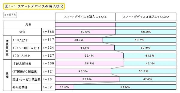 今回は568人を対象に「ビジネスでのモバイル活用と管理状況」についてアンケートを実施しました。「スマートデバイスの導入状況」や「スマホ/タブレットの導入理由、導入規模」「セキュリティ対策」など、その実態が明らかになりましたので、結果の一部をお知らせします。