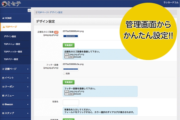ミセテとは、お客様ご自身が必要な機能を選び、デザインや文章を設定するだけで、オリジナルの販促アプリがつくれるサービスです。