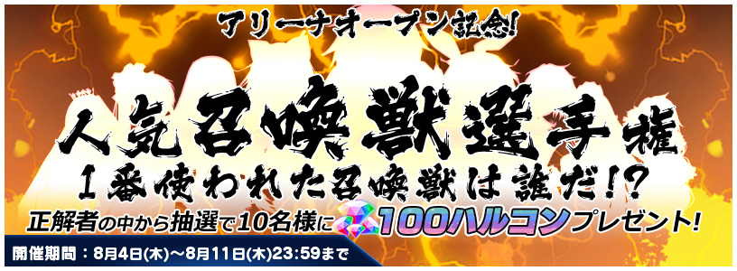 公式ツイッターにてアリーナ内で1番使用された召喚獣を当てるイベントを開催します。