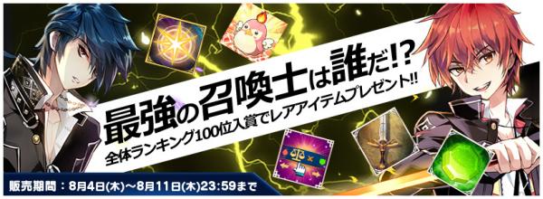そして、アリーナオープンを記念して、シーズン終了後に全体ランキング100位以内にランクインした召喚士に豪華アイテムをプレゼントします。