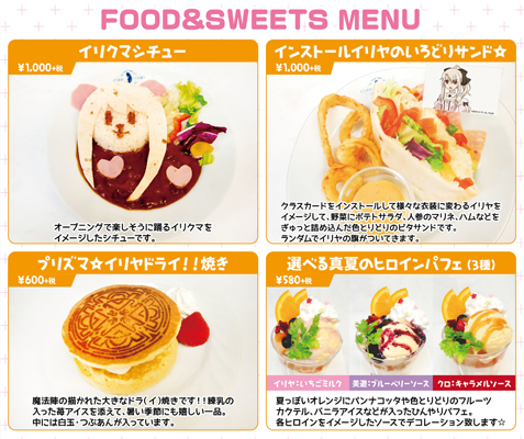オープニングに登場する可愛いイリクマのシチューや、キャラクターたちをイメージしたオリジナルドリンク、ハッシュタグ「#prisma_illya」を付けてツイートした方のみが注文できるスペシャルドリンクなど、ここでしか味わえないメニューをお楽しみください。