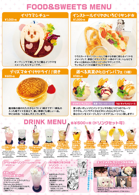 加えて、期間中はTVアニメ名場面の展示、店内BGMなど、キュアメイドカフェが『プリズマ☆イリヤ』一色に!目や耳でも「プリヤ」の世界観をお楽しみいただけます。